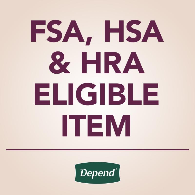 - Depend incontinence and postpartum underwear for bladder leaks are HSA/FSA-eligible in the US; Depend’s packaging and product may vary
