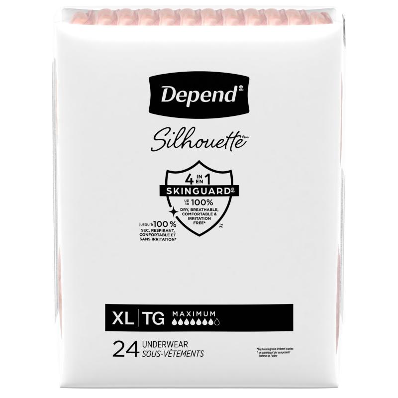 - Depend Silhouette Adult Incontinence & Postpartum Bladder Leak Underwear for Women, maximum absorbency, size extra large (50-60" waist), 10 count