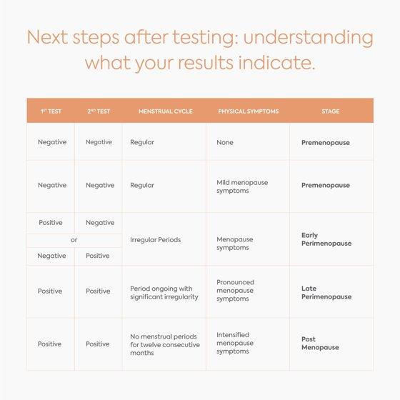 - Determines if you are likely in the pre-, peri-, or post-menopause stage.