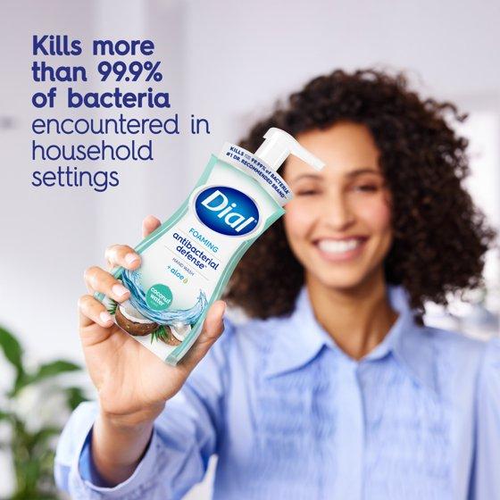 - Dial Antibacterial Defense Foaming Hand Soap kills more than 99.99% of bacteria encountered in household settings