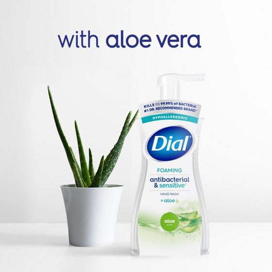 - The Dial Antibacterial & Sensitive Aloe Scent Hand Soap is gentle on skin, leaving it feeling soft and smooth