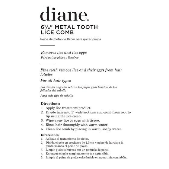 Diane 6 1/4" Metal Tooth Lice Comb - (D7009)