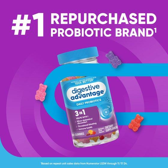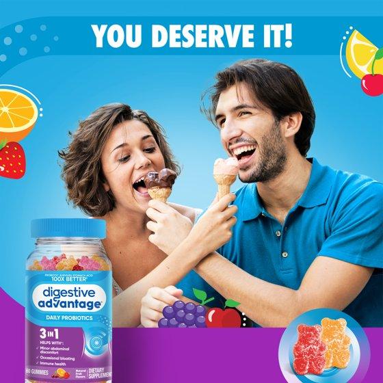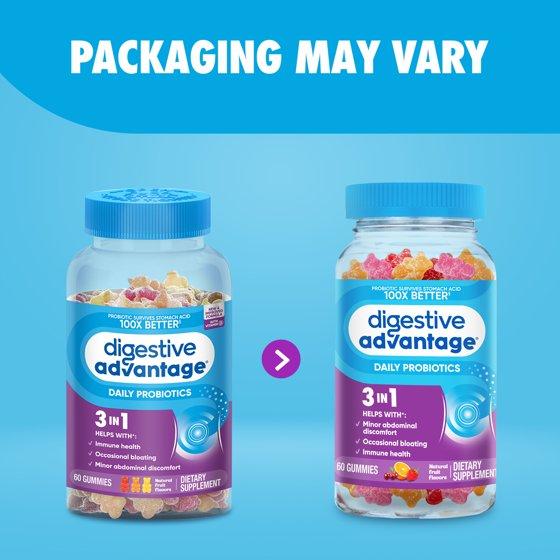 Digestive Advantage Daily Probiotic Gummies, Natural Fruit Flavors - 60 Gummies