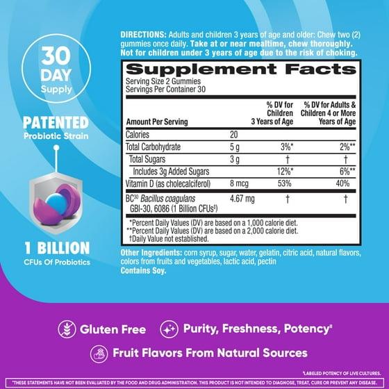 - Delicious natural fruit-flavored gummies with no artificial flavors