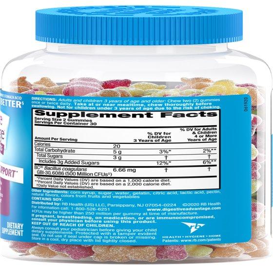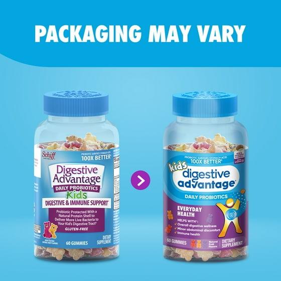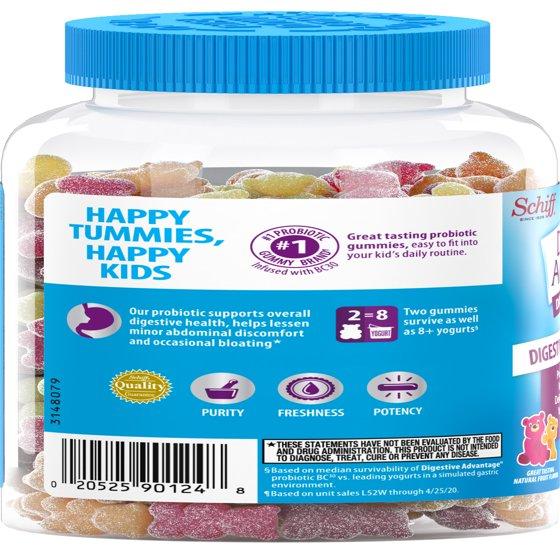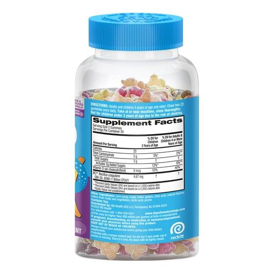 Digestive Advantage Kids Daily Probiotic Gummies, Gut Health for Children, Natural Fruit Flavors, 60 Count