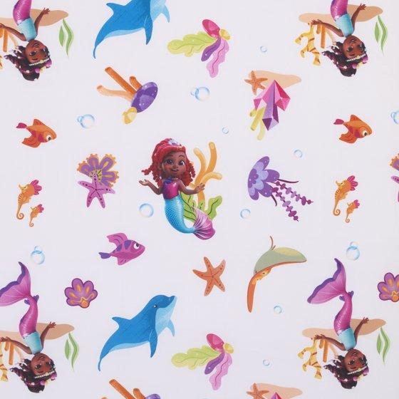 The Disney Ariel 2 Piece Toddler Fitted Sheet Set is made of 100% polyester microfiber. One fitted sheet features an allover print design with Ariel, her friend Flounder, and fun under the sea icons. The other sheet is a solid lavender. Both sheets have elastic on all sides for a snug fit on a standard size 28" x 52" crib/toddler mattress. Perfect for a toddler girl room - makes a great gift! Coordinates with Ariel toddler bedding and accessories.