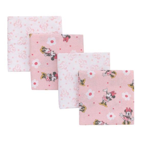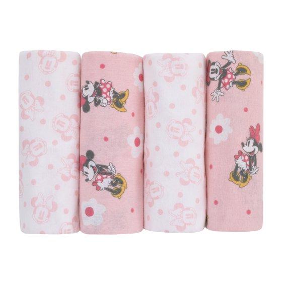 Disney Minnie Mouse Hello Gorgeous 4-PK Cotton Receiving Blankets, Pink, White, Girl