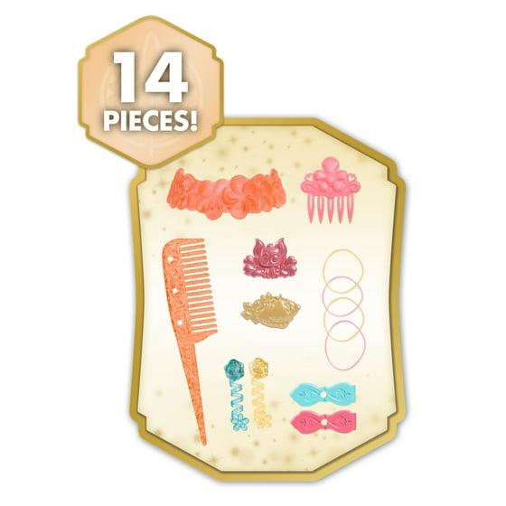 - Includes: Moana styling head, 1 flower crown, 1 hair comb, 1 hair pick, 2 hair barrettes, 2 hair spirals, 2 barrette charms, and 4 elastic hair bands.