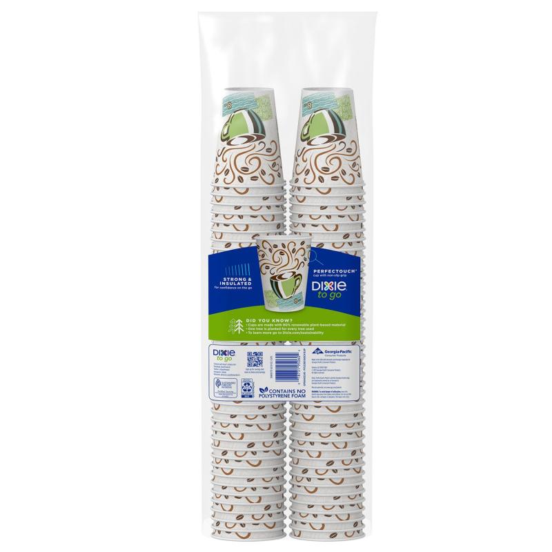 Available in various pack sizes (from 50 to 1,000 count), cup sizes (8 oz. to 20 oz.), and colors (White or Coffee Haze), the Dixie PerfecTouch Insulated Paper Hot Cup is versatile enough for any occasion. But it's not just about convenience - these cups are also sustainable. They're USDA certified Biobased, meet Sustainable Forestry Initiative (SFI®) certification standards*, and are recyclable**, helping you reach your sustainability goals.