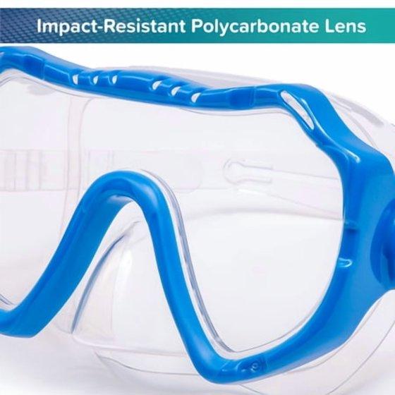 - Comfortable head strap easily adjusts for a water-tight seal