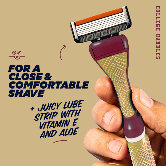 Your team. Your colors. Your face just got smoother with the Limited Edition Starter Set from Dollar Shave Club. This exclusive razor set is built to perform under pressure whether you’re gearing up for kickoff, rallying in the student section, or just want to look sharp in the stands. The sturdy Club Series handle comes repping school colors and features a 360º diamond grip for no-slip control, even in the heat of the post-game shower. This set includes our Club Series handle, two Signature 6-Blade cartridges, a precision trimmer for tricky spots, and a JUICY lube strip infused with Aloe + Vitamin E for comfort and glide. Whether you're a superfan, an alum, or just here for the tailgate snacks, this set brings serious smooth to your pregame ritual. With our new Best Razor Ever, the blades stay sharper longer so you can stay smoother all season. For the full experience, pair your shave with our fan-favorite Shave Butter or Post Shave Dew and grab a refill pack when you're ready.