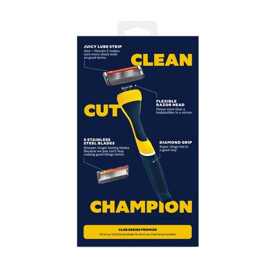 Your team. Your colors. Your face just got smoother with the Limited Edition Starter Set from Dollar Shave Club. This exclusive razor set is built to perform under pressure whether you’re gearing up for kickoff, rallying in the student section, or just want to look sharp in the stands. The sturdy Club Series handle comes repping school colors and features a 360º diamond grip for no-slip control, even in the heat of the post-game shower. This set includes our Club Series handle, two Signature 6-Blade cartridges, a precision trimmer for tricky spots, and a JUICY lube strip infused with Aloe + Vitamin E for comfort and glide. Whether you're a superfan, an alum, or just here for the tailgate snacks, this set brings serious smooth to your pregame ritual. With our new Best Razor Ever, the blades stay sharper longer so you can stay smoother all season. For the full experience, pair your shave with our fan-favorite Shave Butter or Post Shave Dew and grab a refill pack when you're ready.