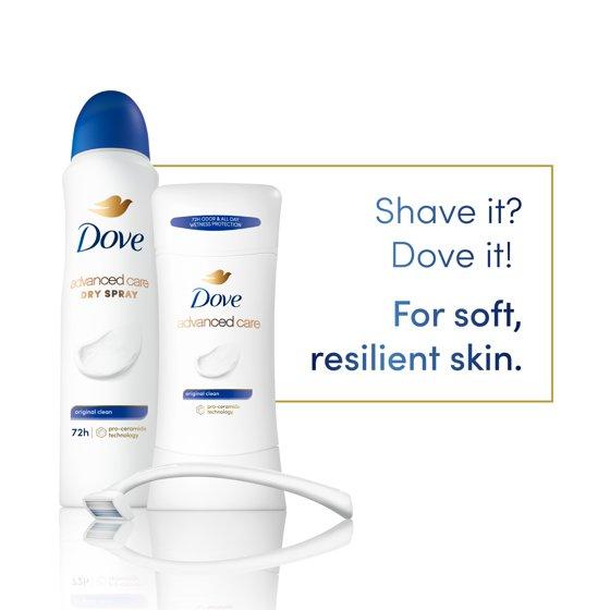 Dove Advanced Care Antiperspirant Deodorant Dry Spray, Original Clean, Sometimes a great Antiperspirant deodorant is one you know and trust. If you're a fan of Dove signature, original scent, try Dove Advanced Care Original Clean Dry Spray Antiperspirant Deodorant. This dry spray cares for your underarm skin and helps it recover from the irritation that shaving can cause. This deodorant spray for women goes on instantly dry, which means you can get dressed instantly without the fear of wet patches on your clothes. The tried-and-tested kind-to-skin formula, which is alcohol (ethanol) free and contains our signature 1/4 moisturizers with natural oil, cares for your delicate underarm skin. And, of course, Dove Original Clean gives you up to 48 hours of protection from underarm sweat and odor. Offering effective protection and great underarm care, this Antiperspirant spray leaves your skin feeling healthy and protected.