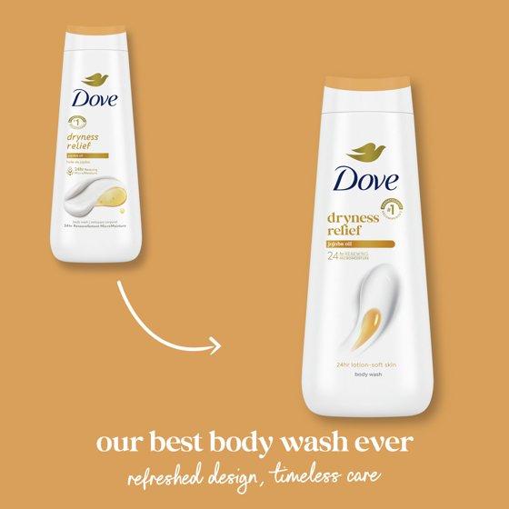 - RELIEVE: Dove Dryness Relief Body Wash has a rich, creamy formula and is full of skin-loving nourishers to gently cleanse your dry skin as the Jojoba oil-infused formula hydrates and renews.