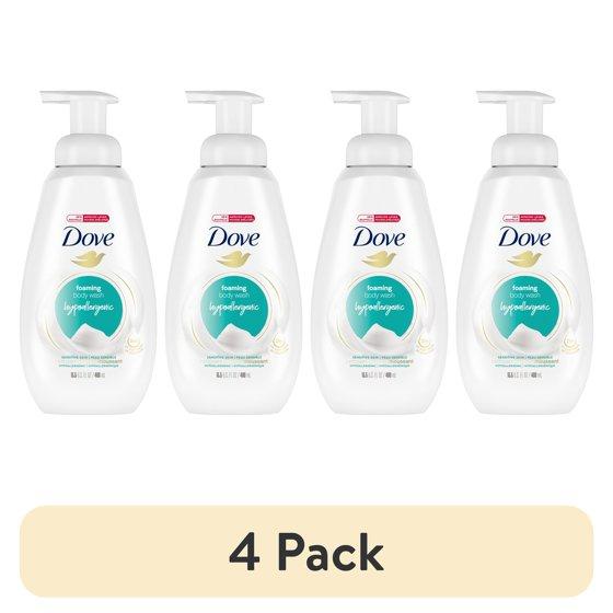 (4 pack) Dove Foaming Long Lasting Hypoallergenic Women's Body Wash for Sensitive Skin, 13.5 fl oz