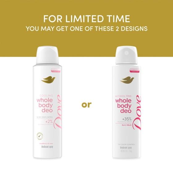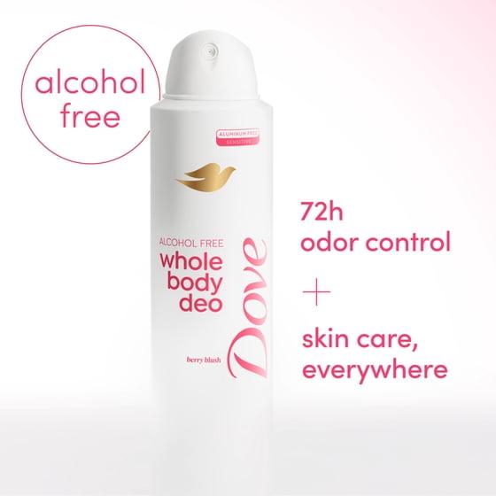 - ALCOHOL FREE ODOR CONTROL: Dove Whole Body Deo provides 72-hour odor control, without irritating alcohol; The gentle formula tackles odor everywhere, with no sting or burn