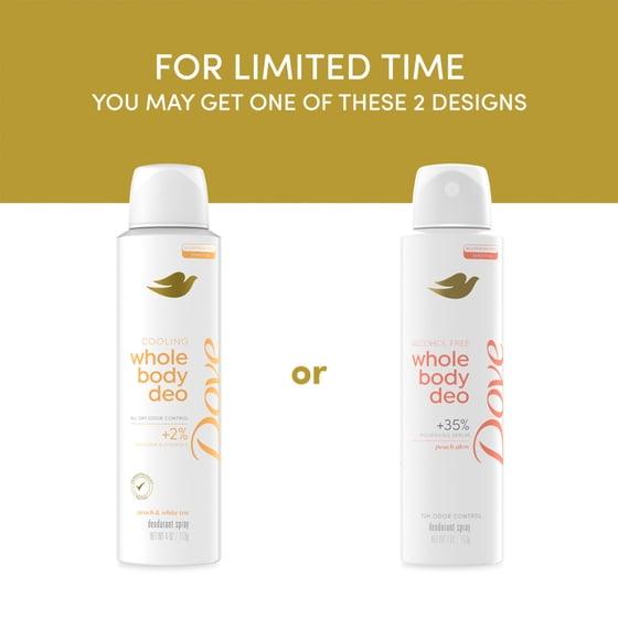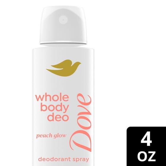 Dove Whole Body Deo Alcohol Free Deodorant Spray for Women Peach Glow, 4 oz