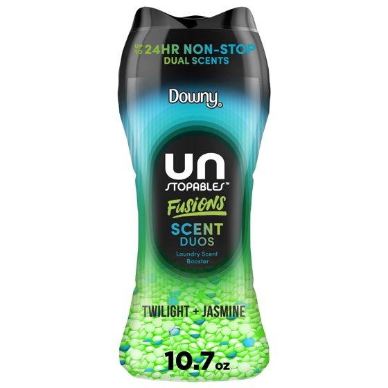 - Includes on 10.7 oz bottle of Downy Unstopables Fusions In-Wash Laundry Scent Booster Beads in the Twilight and Jasmine Scent