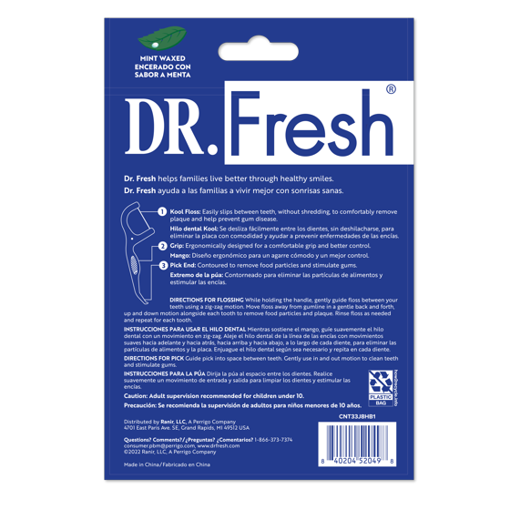 Dr. Fresh Kool Floss Waxed Dental Floss Picks in Easy Resealable Packaging, Mint, 60 Count