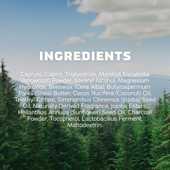 Caprylic/Capric Triglyceride, Manihot Esculenta (Arrowroot) Powder, Stearyl Alcohol, Magnesium Hydroxide, Beeswax (Cera Alba), Butyrospermum Parkii (Shea) Butter, Cocos Nucifera (Coconut) Oil, Triethyl Citrate, Naturally Derived Fragrance, Simmondsia Chinensis (Jojoba) Seed Oil, Jojoba Esters, Charcoal Powder, Tocopherol, Lactobacillus Ferment, Maltodextrin.
