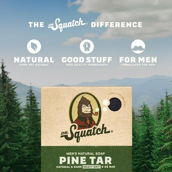 Experience the power of Dr. Squatch Pine Tar Natural Bar Soap for Men.