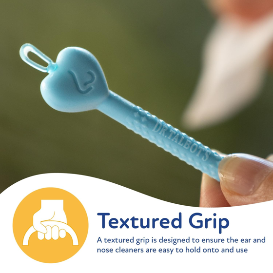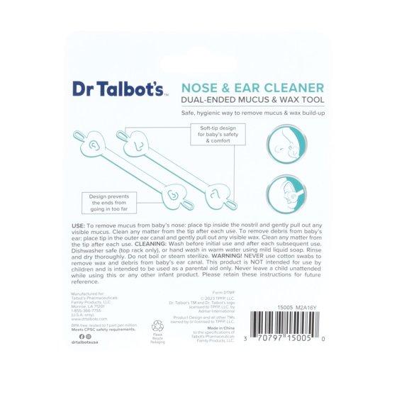 Get a better clean in those hard-to-reach places with Dr. Talbot's Ear and Nose Cleaner. This dual-ended tool removes dried mucus and ear wax safely and gently. Remove mucus by placing the tip inside the nostril or ear, and pulling out any visible mucus or wax. Clean any matter from the tip after each use. The Ear and Nose Cleaner's design prevents the tool from being inserted too far and features a soft-tip design that is safe for baby. Easy to use and effective, Dr. Talbot's nose and ear cleaner kit is a newborn essential, and the hygienic way to help little ones be comfortable and happy.