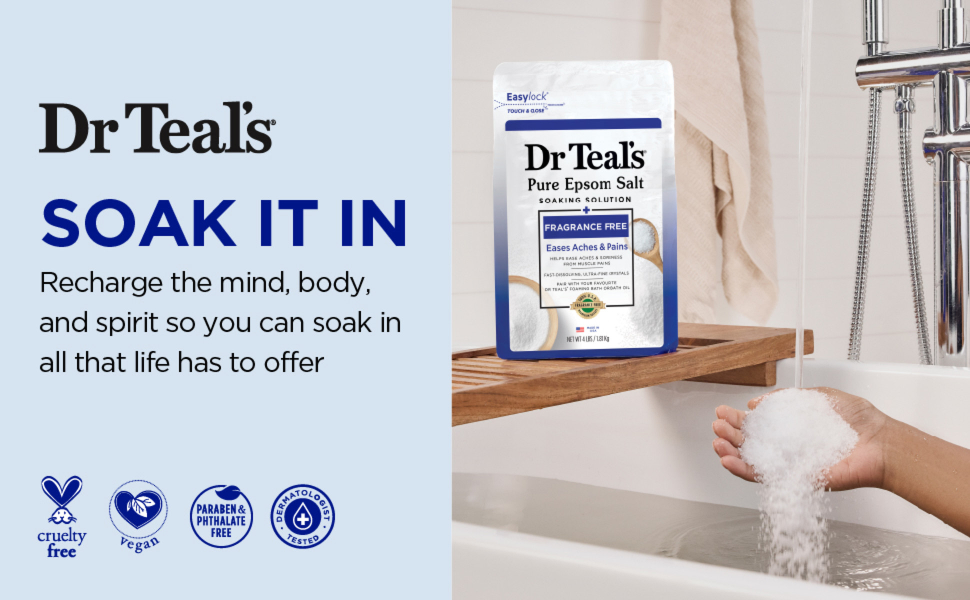 - POWERED BY MAGNESIUM: Dr Teal's Pure Epsom Salt (Magnesium Sulfate) helps ease aches & pains, relaxes the body & helps reduce stress