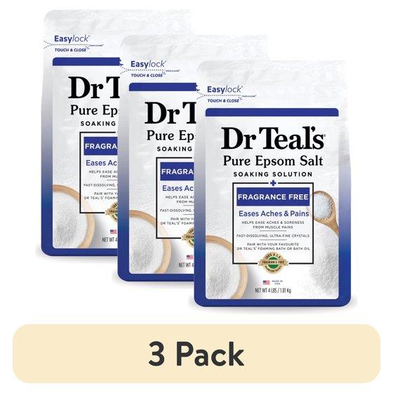 (3 pack) Dr Teal's Epsom Salt Magnesium Soak, Fragrance Free, 4 lbs