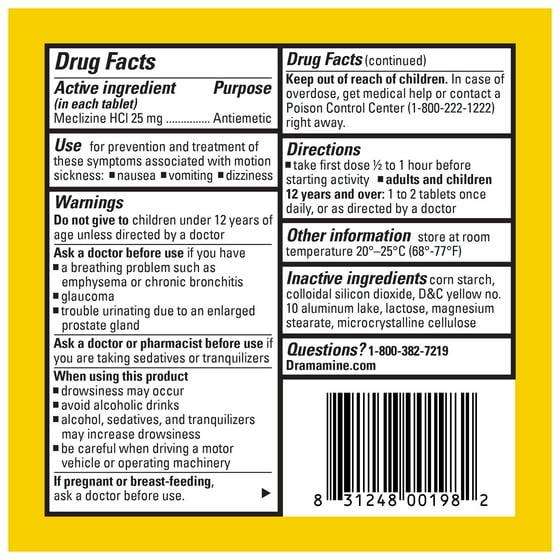 - Contains 1 pack of Dramamine Motion Sickness Relief Less Drowsy tablets, 8 count