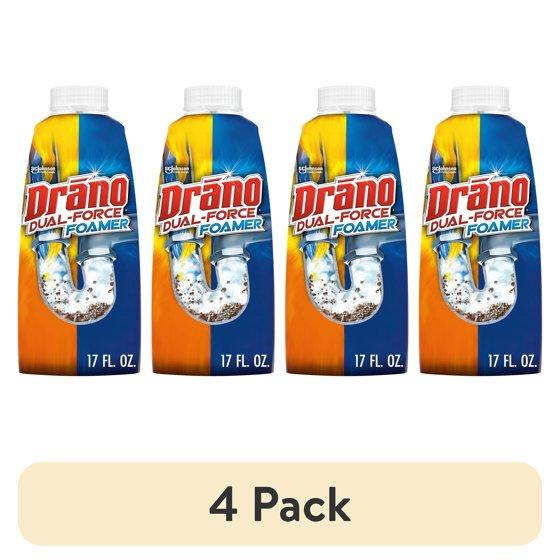 Open carefully. Do not squeeze bottle. Avoid splashing. Clean up spills at once. Keep hands, face, children, and pets away from drains when using Drano Dual Force Foamer. Product may foam up from drain. This is normal. If foam is visible after use, rinse foam completely down drain with water. Do not use product with a plunger because Drano Dual Force Foamer may still be present. Do not use in a toilet. For slow running toilets, use Drano Prevention. Do not reuse empty container. Rinse container and replace cap before discarding. Danger: Keep out of reach of children and pets. Can cause burns on contact. Avoid contact with liquid, foam, or residue around the drain. Wash thoroughly after handling. If product contacts clothing, immediately remove and wash clothing. Harmful if swallowed. Do not taste or swallow. First Aid: Give immediately, then call a poison center, physician, or emergency room. If swallowed, rinse mouth. Immediately drink a glass of water or milk. Do not induce vomiting. Eyes and Skin: Rinse with water, remove contacts (if worn), then rinse with plenty of water for at least 20 minutes. Chemical Hazard: Contains sodium hypochlorite (bleach), a strong oxidizer. Never use or mix with other household products such as acids, bowl cleaners, rust removers, or products that contain ammonia. Hazardous gases may result. If this occurs, leave the room immediately and ventilate area if possible.