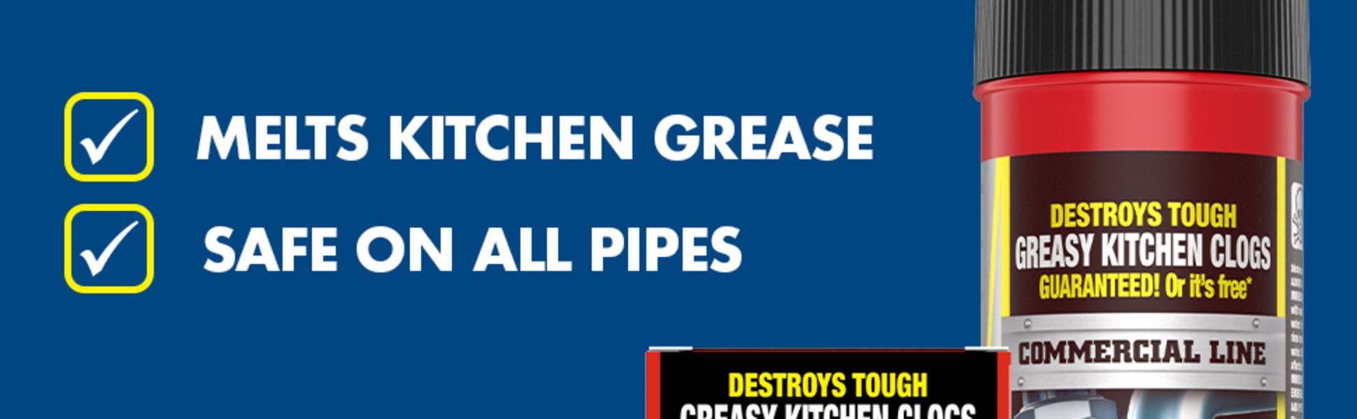 - Specifically designed to destroy tough, greasy kitchen clogs