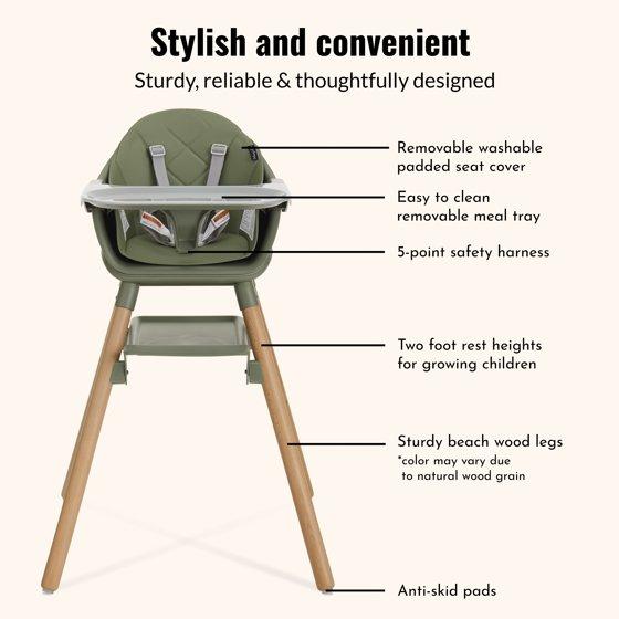 - SAFE & STABLE: Includes a 5-point safety harness and non-slip foot pads to keep your child secure during meals and activities.