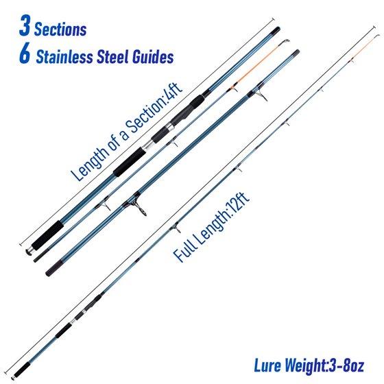 - Specially designed for surf fishing on shoreline, this rod has the heavy power and stiffness for casting heavy lures, surf fishing rigs with heavy baits. Lure weight up to 8oz . Heavy power also helps improve hookset by providing additional drag when fish bites, and make the fight against big trophies easier.