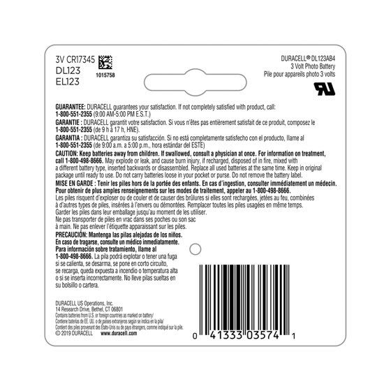 - LONG-LASTING POWER – Duracell high power CR123A Lithium batteries were also developed to provide reliable performance for essential devices like compatible smoke detectors and fire alarms