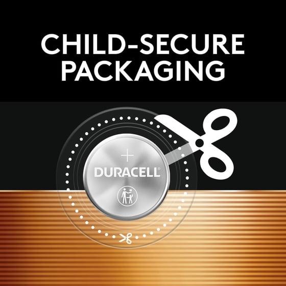 - CHILD-SECURE PACKAGING: Duracell Lithium Coin CR2032 3 Volt battery packaging is nearly impossible to open without scissors.