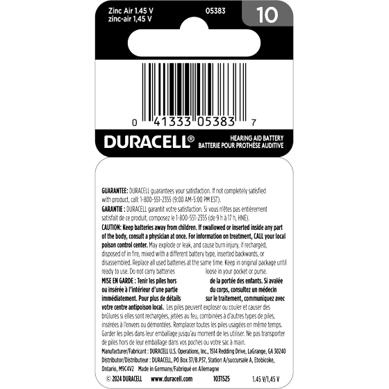 - CHILD-SECURE PACKAGING: Duracell Hearing Aid size 10 Yellow battery packaging is nearly impossible to open without scissors