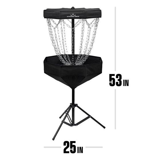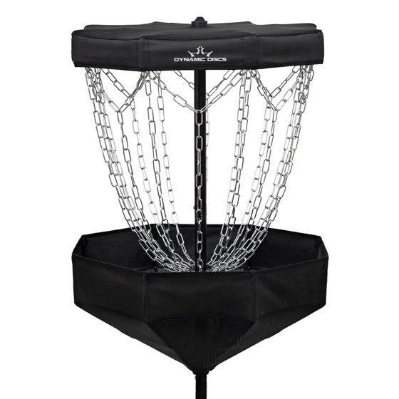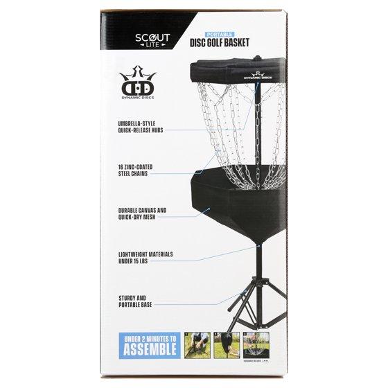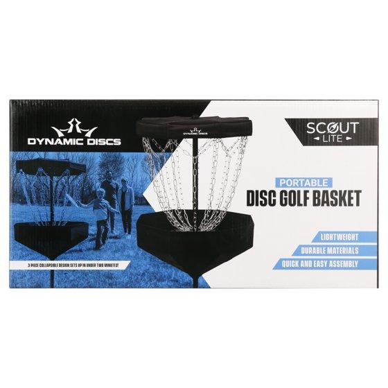 - The Dynamic Discs Scout Disc Golf Basket is perfect for getting in a putting practice session anywhere you go! The tripod base and basket lock into place from a collapsed position for quick assembly, and disassembly is just as simple.