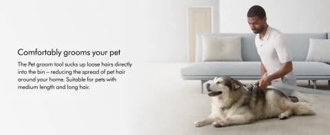 - Suitable for pets with medium or long hair. The Pet groom tool removes loose hairs, dead skin, and allergens directly from your pet before they spread around the home.