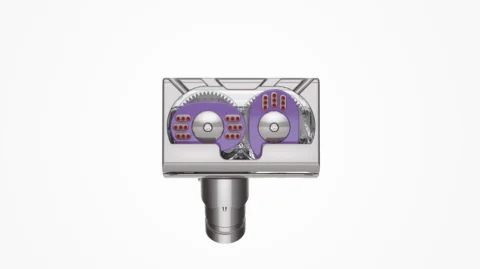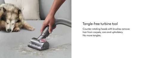 - Counter-rotating heads with brushes remove hair from carpets, cars, and upholstery. No more tangles.