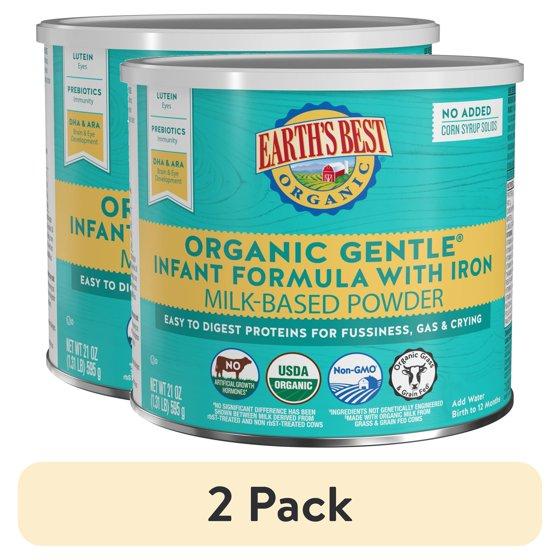 (2 pack) Earth's Best Organic Gentle Powder Baby Formula with Iron DHA & ARA, 21 oz Canister