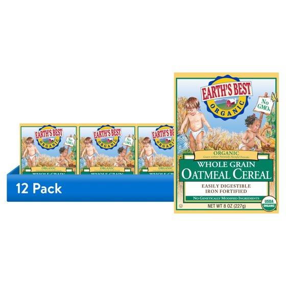 (12 pack) Earth's Best Organic Whole Grain Oatmeal Infant Cereal, 8 oz Box