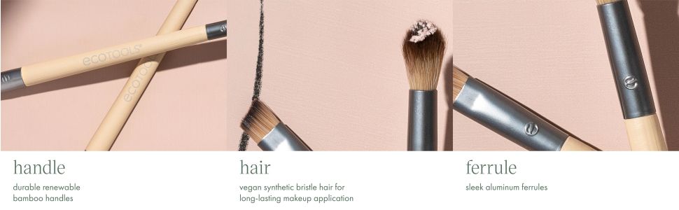 - EcoTools makeup brushes feature 100% renewable bamboo handles and aluminum ferrules