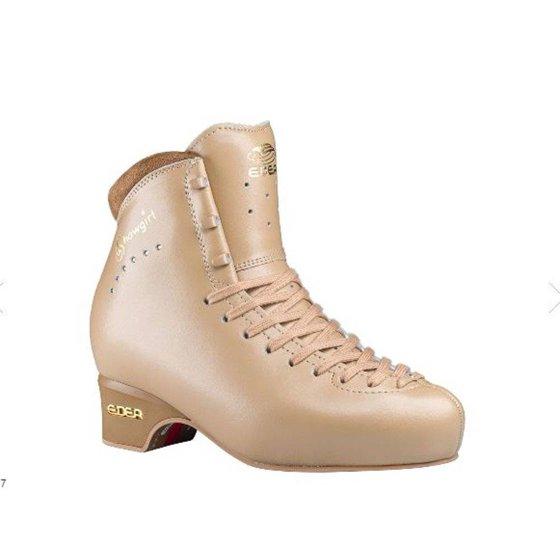 The EDEA ShowGirl Skate is a new take on the traditional Flamenco Ice. The ShowGirl is a beautiful Tan Skate especially designed by Skates U.S. for the rigors of show skating. The EDEA ShowGirl Skate is the Ultimate Skating Boot for Show Skating, High-Level Competitive Ice Dance, Roller Long Figures, and Inline FreeStyle Roller Skating where a great Toe Point is desired. The Ultra-Light Super Tough Construction with Beautiful Leather finish outside with an anti-bacterial and anti-microbial MicroFibre mesh Lining covers comfortable memory foam. The ShowGirl Skate is made with Revolutionary NEW Ultra Lightweight Materials, which means the ShowGirl Skate is about 25% to 45% lighter than comparable traditional leather Skating Boots.