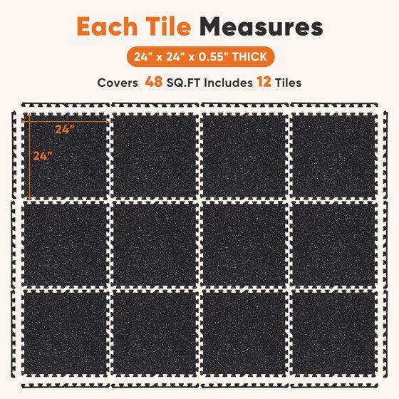 EDX 24 Inch Gym Floor Mats 12P Rubber Top High Density EVA Foam Home Gym