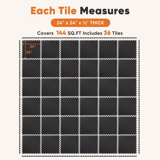 EDX 24 inch EVA Foam Tiles, 36P Puzzle Exercise Mat for Home Gym & Floor Padding, Black