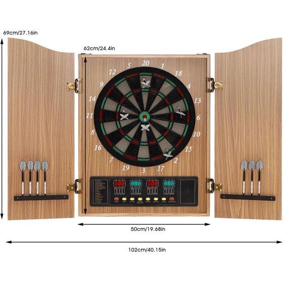 Electronic Dartboard Cabinet Combo Pro Size Large Auto-Scoring Cricket Display Extended Dart Catch Area 16 Player Multiplayer with Soft Tip Darts and Power Adapter