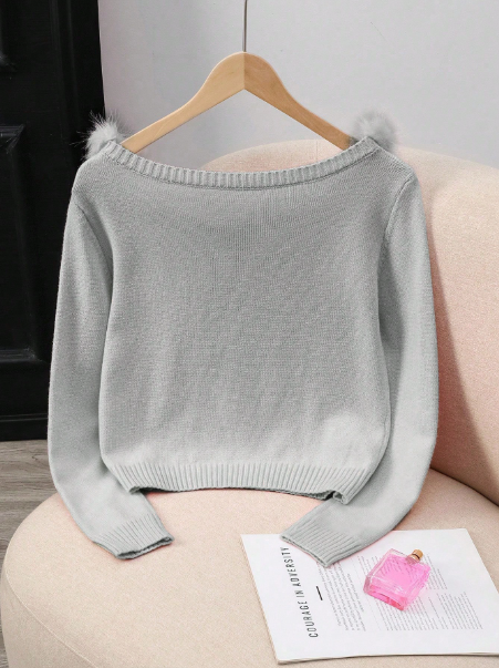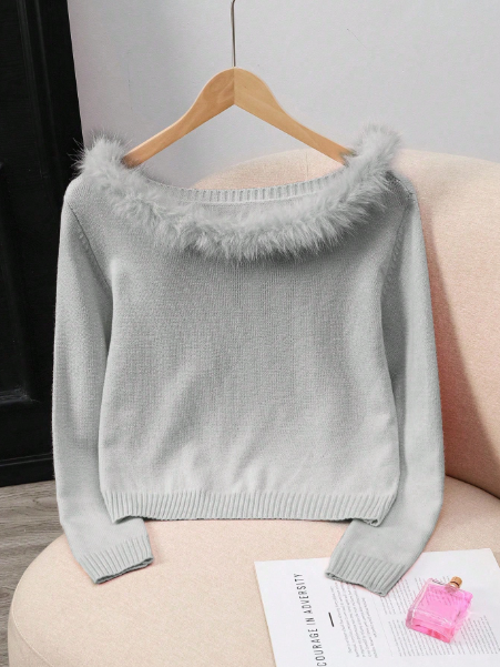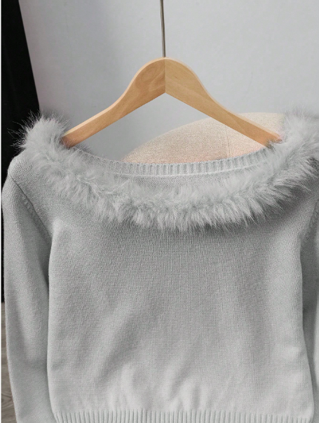 Elegant Long Sleeve Faux Fur Collar Pullover Sweater