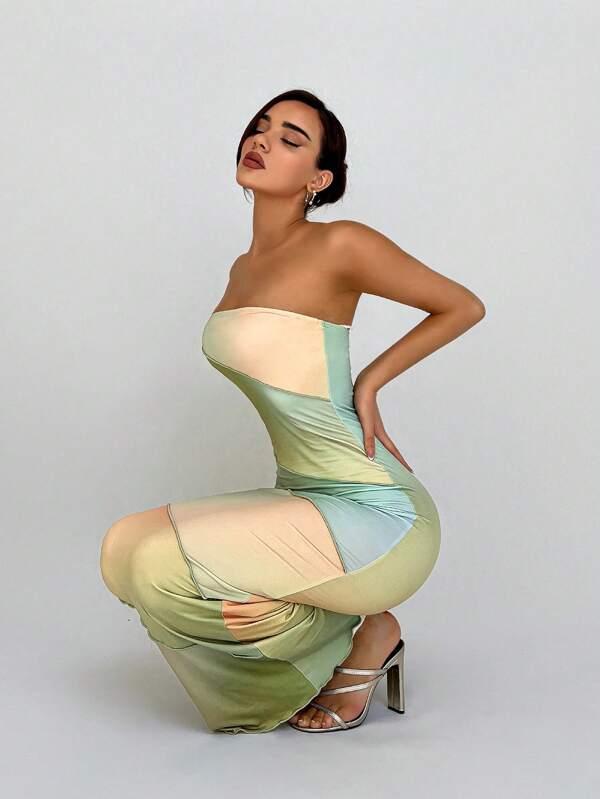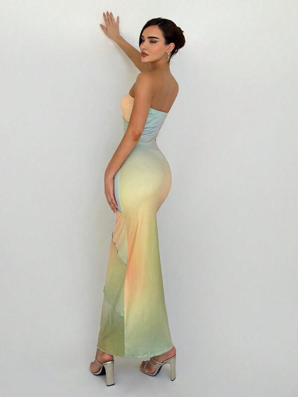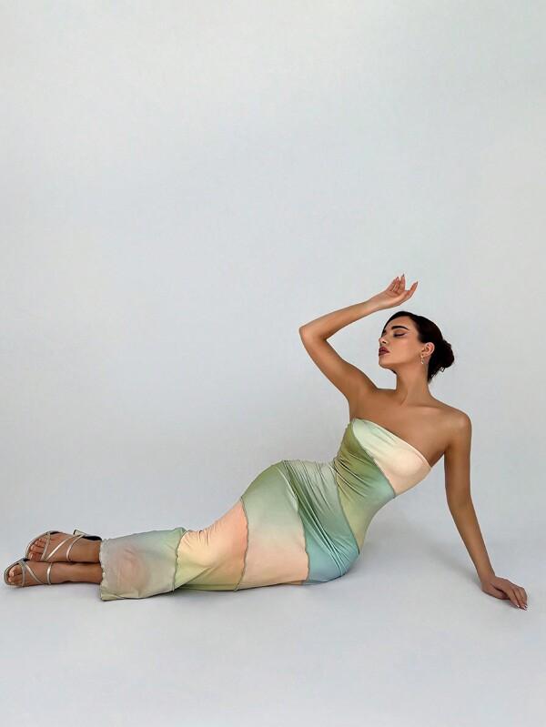 Elegant Simple Smudged Gradient Printed Knitted Bodycon Dress For Women