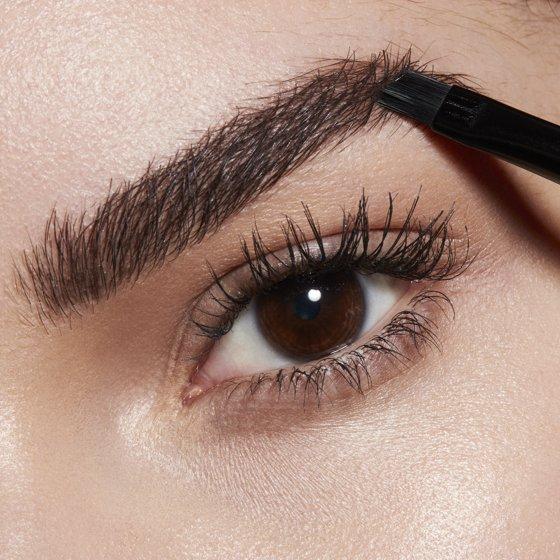 The e.l.f. Eyebrow Duo Brush includes a dense angled brush on one end to precisely fill in and contour brows while the wand side combs and shapes hair into place. Use with powder, cream, and gel formulas for a polished look.