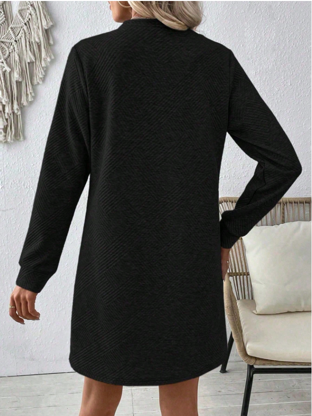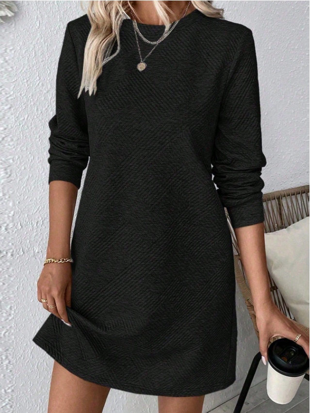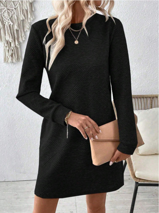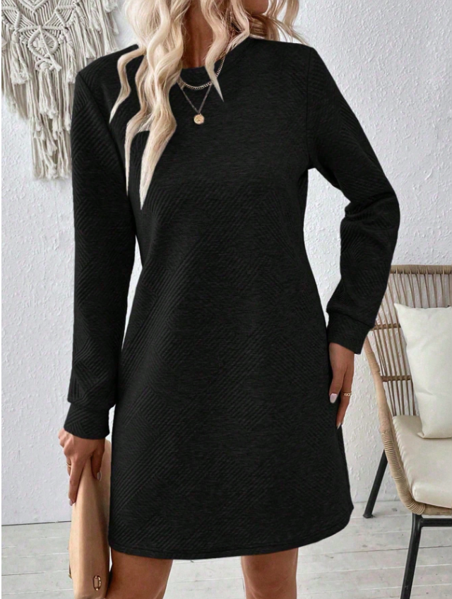 EMERY ROSE Women Casual Solid Color Minimalist Textured Long Sleeve Dress, Autumn Fall Cloth For Women
